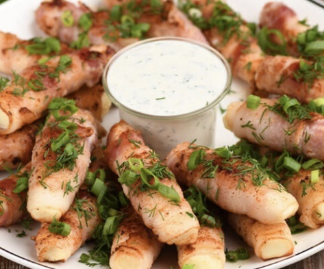 Сыр (для гриля или адыгейский)- 250 гр. Бекон (сырокопченый) - 20 полосок Для соуса: сметана, укроп, чеснок. ✅ Сыр нарезаем на бруски (20 штук). ✅ Бруски сыра выкладываем на полоски бекона и заворачиваем. ✅ Обжариваем на сковороде с двух сторон до румяной корочки. ✅ Готовим соус: чеснок выдавливаем через чесночницу, смешиваем со сметаной и укропом. ✅ Закуску перекладываем на тарелку и подаем с соусом. Готово! Для удобства мы также есть в телеграмм-канале, переходи и готовь⬇️⬇️⬇️