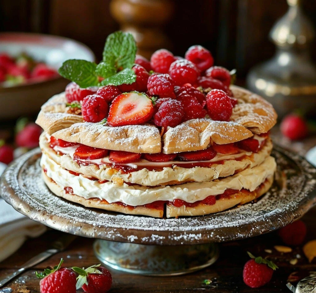 Здравствуйте дорогие читатели,сегодня мы вам расскажем как готовить один из самых необычных и запоминающихся рецептов Наполеона. Время приготовления около 1 ч 30 мин Калории: 262 Ингредиенты: Лаваш - 4 листа Сахарная пудра - 20 г Сахар - 150 г Крахмал - 40 г Ванилин - 3 г Яйцо C1 - 3 шт Молоко - 500 мл Масло сливочное - 100 г Способ приготовления: Шаг 1: Сахар - 150 г Крахмал - 40 г Ванилин - 3 г Яйцо C1 - 3 шт Молоко - 500 мл В сотейнике смешайте сахар, крахмал, ванилин, яйца. Всё перемешайте венчиком до однородности. Влейте молоко и снова перемешайте. Шаг 2: Поставьте сотейник на плиту. На небольшом огне, постоянно помешивая, дождитесь загустения крема. Доведите крем до легкого кипения и сразу снимите с плиты. Шаг 3: Масло сливочное - 100 г Перелейте смесь из сотейника в миску. Добавьте сливочное масло и тщательно перемешайте венчиком. Сверху накройте пищевой пленкой «в контакт» (плёнка должна касаться крема). Охладите крем в холодильнике. Шаг 4: Лаваш - 4 листа Лаваш вырежьте ф