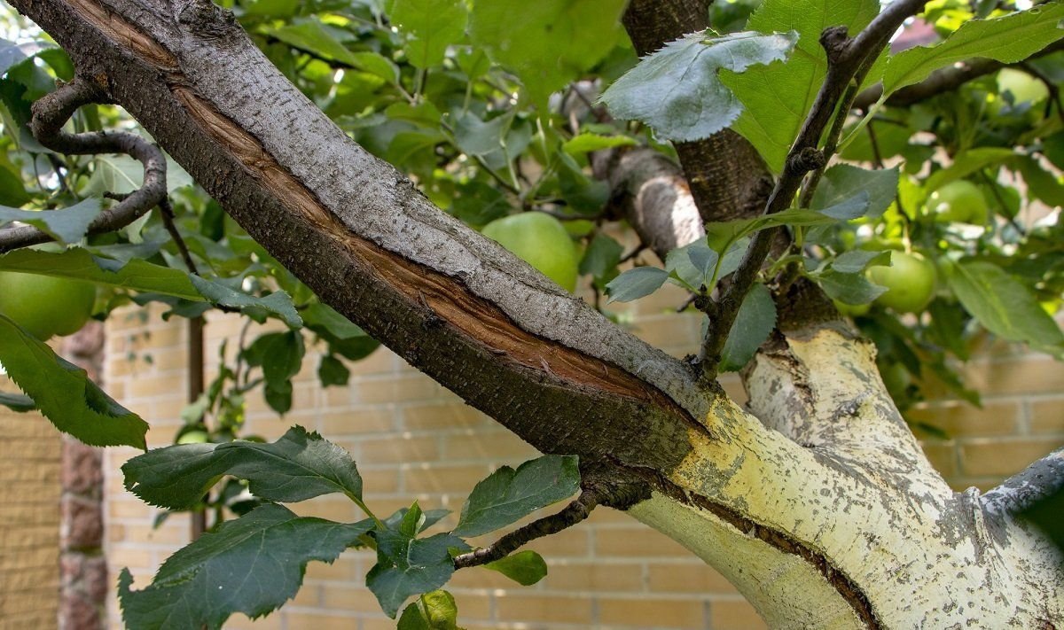 - Очистите поврежденную область от отмершей коры до здоровой древесины.