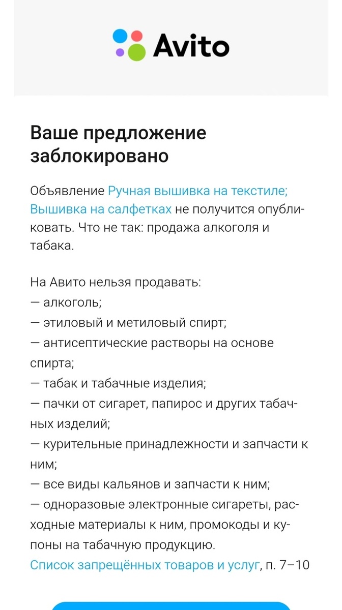 Раньше, встречая здесь посты про бредовые проделки Авито, я либо пролистывала их либо читала и думала что возможно, ТСы недоговаривают что-то. А оказалось, что возможно всё именно так бредово и есть. У меня на авито объявления с моей вышивкой. Есть там тыквы вышитые. Висело это объявление очень долгое время, благополучно каждый раз опубликовывалось заново. А сегодня я получила вот такое интересное письмо. Переходим по указанной ссылке и видим, что там эти долбанные тыквы. Ни алкоголь, ни табак. А тыквы. Я сначала подумала, что может ошибка какая-то и у меня неправильно ссылка открывается, поэтому полезла в приложении смотреть. Оказалось, что правильно. Действительно заблокировали тыковки О_о Я, разумеется, тоже им написала. Ситуация-то идиотская. Надеюсь разберутся и разблокируют. Авито (не могу вам здесь отметить, почему-то) вы зачем мои тыквы заблокировали, дуралеи? Пост автора Igolka.kate. Читать комментарии на Пикабу.