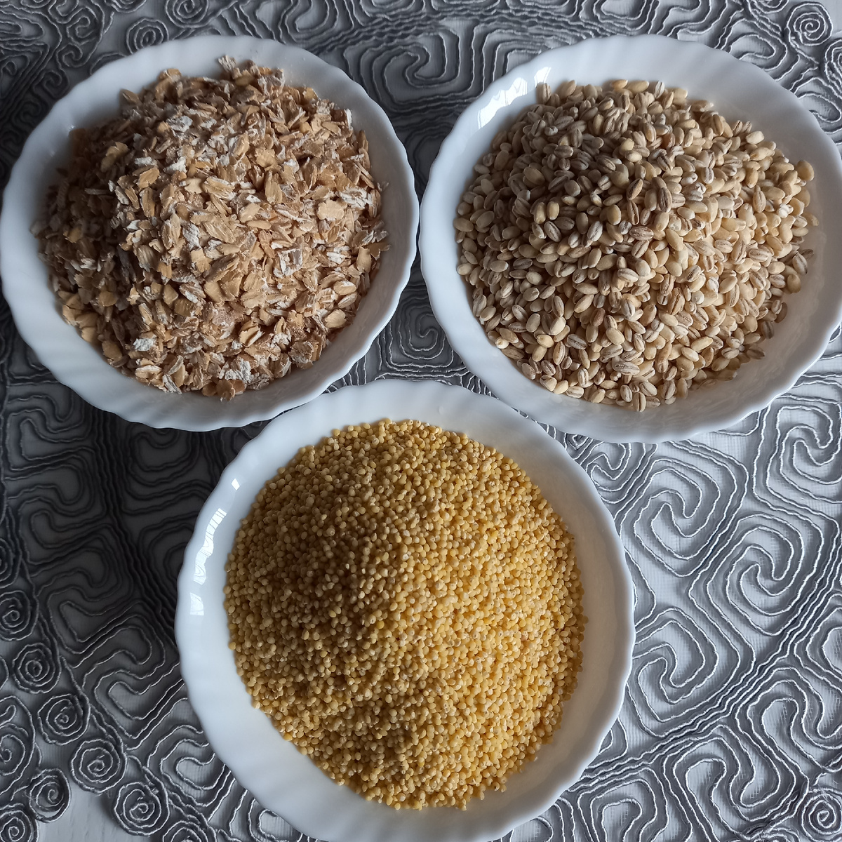 Может кто-то назовет это чудачеством, но хочу поделиться необычным способом улучшения плодородия почвы... обычными крупами. Каждый, кто занимается садом и огородом, знает о важности осенних подкормок. Особенно ценными являются органические, но не у всех есть компост, да и готовые удобрения стоят прилично. Вот и становятся пшено, овсянка, перловка теми самыми палочками-выручалочками, которые, разлагаясь в почве, отдают ей множество полезных органических веществ, благотворно влияют на рост и развитие растений, а еще делают землю рыхлой и помогают удерживать влагу. Прошлой осенью я использовала кукурузную крупу, а сейчас взяла овсянку, перловку и пшено. Пшено, которое производят из проса, содержит такие минералы, как кальций, медь, железо, магний, марганец, фосфор, калий и селен. Еще в нем много фолиевой кислоты, витаминов В6, С, Е и К. Перловка, получаемая из ячменя, богата фтором, калием, витаминами группы В. Овсяная крупа ценится за множество микроэлементов: калий, фосфор, магний, желе