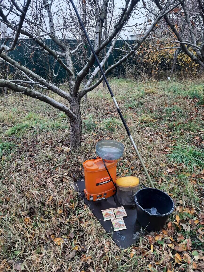 Искореняющее опрыскивание сада осенью железным купоросом.