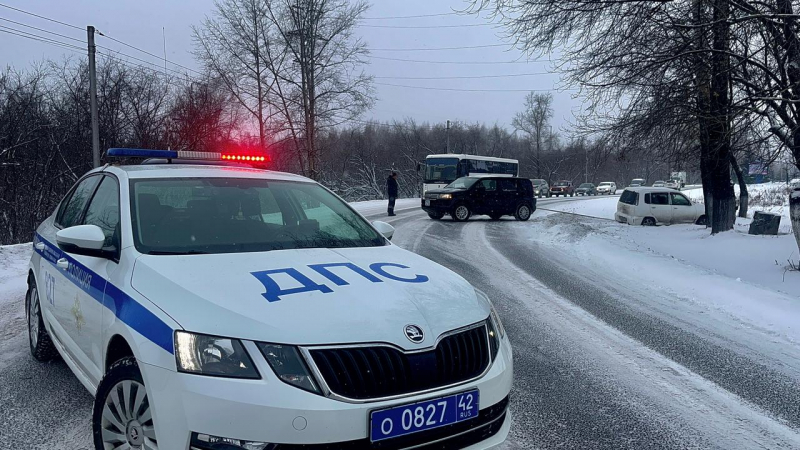 В Прокопьевске сотрудники госавтоинспекции оказали помощь автомобилистке, съехавшей с дороги в условиях непогоды