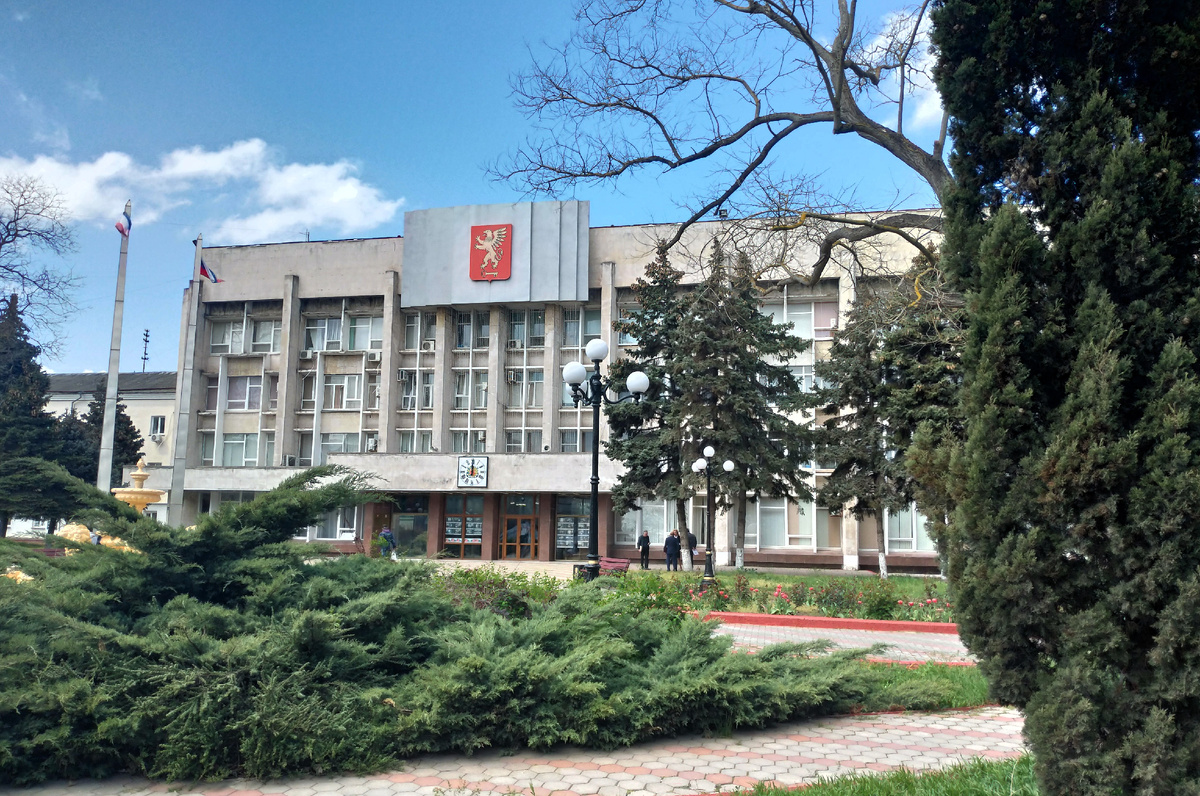 Итак, это здание Администрации города Керчь, находится на улице Кирова, 17. На нем вы видите Малый герб Керчи — на щите красного цвета изображен древний символа города — мифическое существо Грифон. А под ним - золотой ключ от города. Есть еще Большой (парадный) герб Керчи. Отличается он от Малого тем, что герб обрамлён венком из золотых ветвей лавра и дуба. Увит он лентами голубого, Андреевского, цвета и красного - Александровского. И наложен на черные адмиралтейские якоря. В верхней части корона, а в нижней части медаль "Золотая Звезда" города-героя.