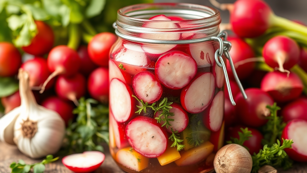 Вот что я делаю с редиской на зиму! Улетает со стола вмиг Когда на улице греет весеннее солнце, редиска радует нас своим хрустящим вкусом и яркими цветами. Но стоит задуматься, как сохранить это чудо природы до зимы. Я расскажу вам о простом, но потрясающем рецепте, который поможет вам запечатлеть вкус весны для зимних вечеров – маринованная редиска с уксусом и пряными травами. Первое, что стоит отметить, это важность свежих и качественных ингредиентов. Лучше всего использовать местную редиску, собранную на рынке – она будет намного вкуснее той, что лежит в магазине. Для этой закуски подойдут как «классические» сорта с красной кожурой, так и сорта с белой или черной кожицы – ведь пища должна радовать не только вкусом, но и видом. Итак, вам понадобятся: — 500 г свежей редиски — 200 мл яблочного уксуса (можно заменить на винный) — 100 мл воды — 2-3 ст. л. сахара (по вкусу) — 1 ч. л. соли — Чеснок (2-3 зубчика) — Лавровый лист (по желанию) —
