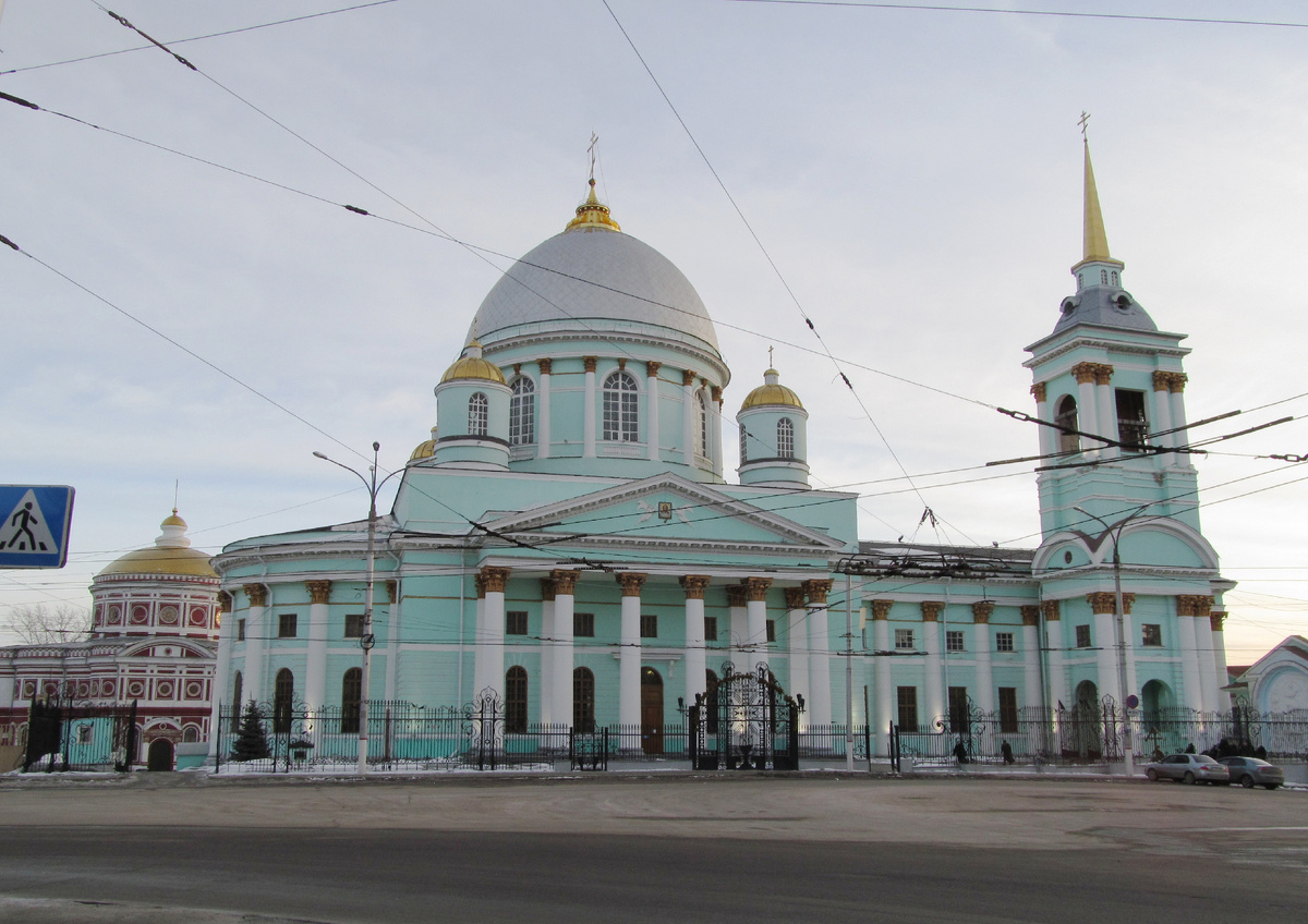 За собором виден храм Воскресения Христова. Очень интересная архитектура в византийском стиле. Построен на пожертвования прихожан из дворян в 1875 году. В советское время был закрыт, использовался как склад Электроаппаратного завода, поэтому внешне сохранился неплохо. Говорят, что из этого храма ведут катакомбы на берег реки Тускарь. Сейчас в храме проходят богослужения.