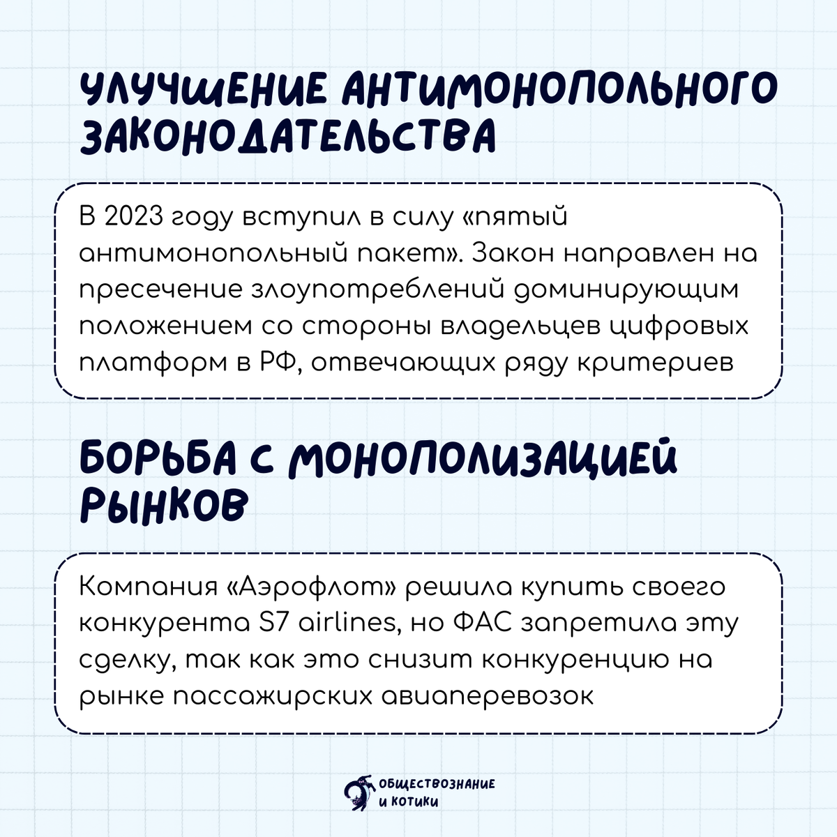 Чтобы забрать максимум баллов за 25 задание ЕГЭ по обществу, необходимо уметь приводить примеры из общественной жизни РФ. Подготовили список готовых примеров по теме «Антимонопольные меры в РФ» 💰 Для учеников полугодового курса мы подготовили файлики с примерами по 25 заданию по каждой теме! 📝 Не придется самостоятельно искать примеры из общественной жизни РФ, достаточно скачать файлик и выучить Записаться на полугодовой курс 🔔 https://socialandcats.com/polugod?utm_source=dzen