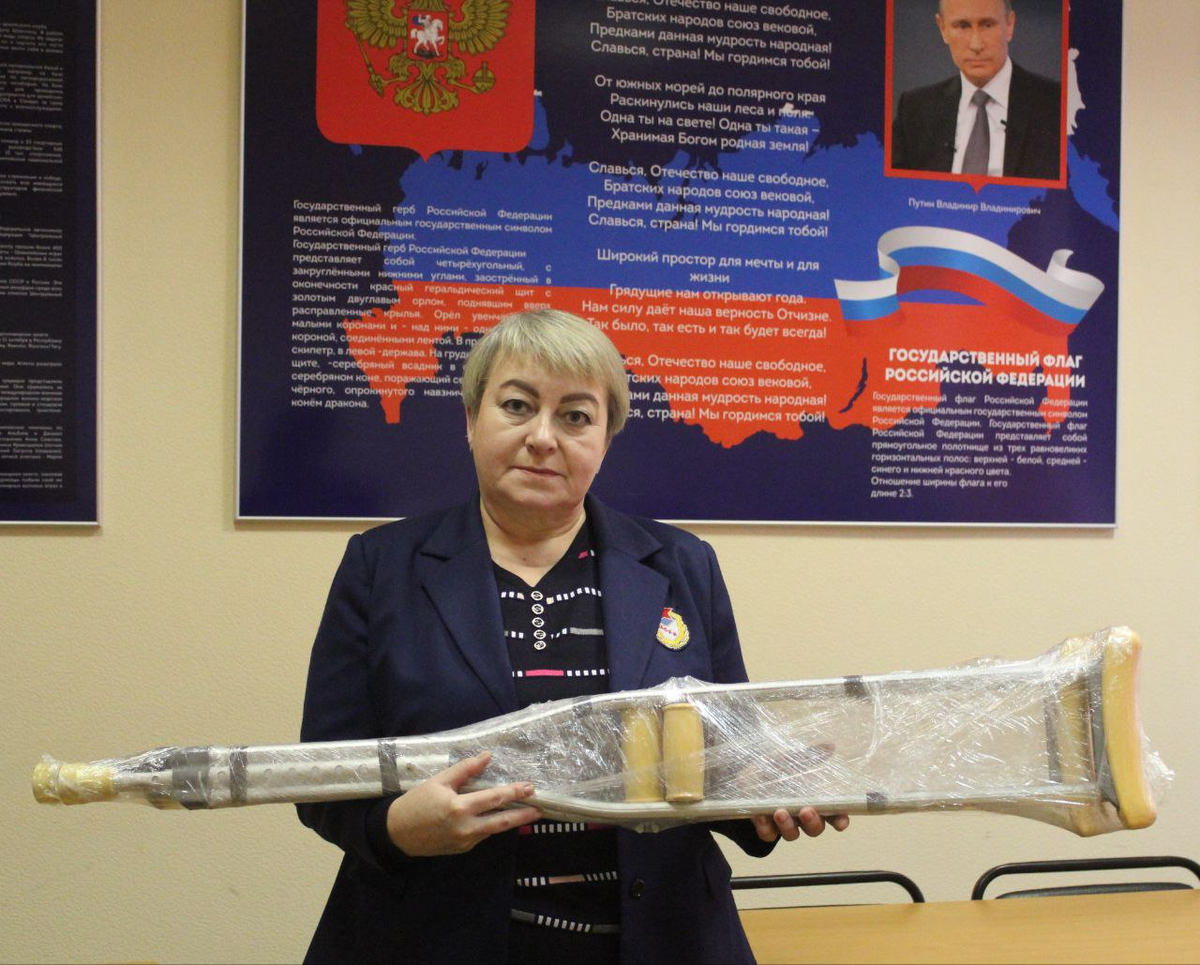 Многие посетители откликаются на призыв о помощи защитникам Родины. Один из них передал на пункт сбора костыли для раненных участников СВО. Он желает бойцам скорейшего выздоровления. Уже вскоре эта помощь будет отправлена в зону СВО.