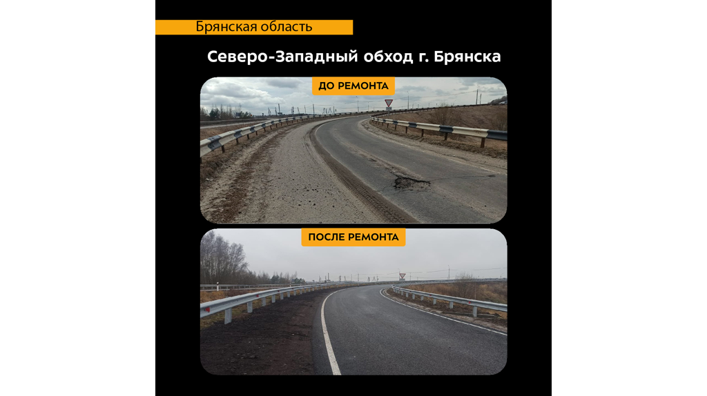 Опубликовано фото участка дороги Северо-Западный обход Брянска до и после ремонта