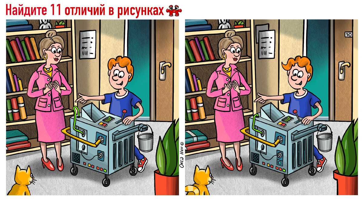11 отличий на картинках про мальчика изобретателя. Интересные тесты для внимания и памяти.