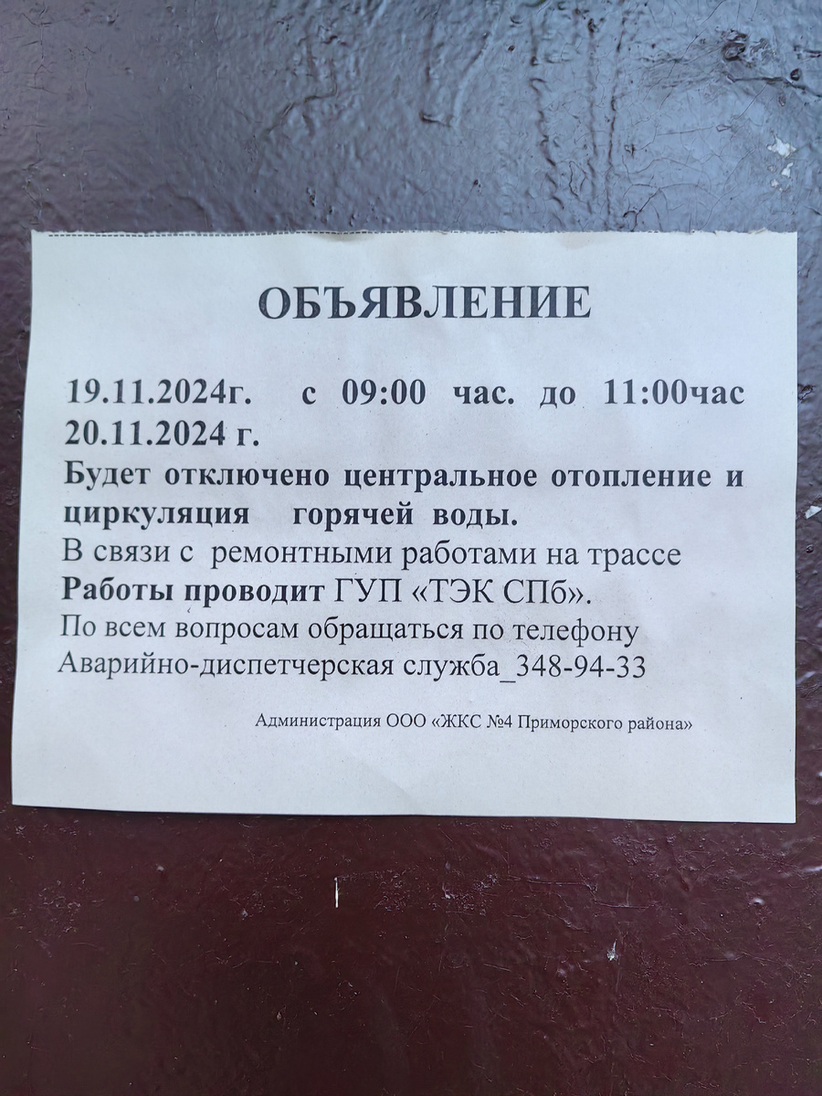 Вчера был понедельник. Ветер сносил в лицо снежинки с дождем, валил активно с неба и не давал гулять собакам. Мы сходили с Герой до ВБ. Получила манишку, еще не успела ее опробовать в деле. Она другая, но взяла. Муж оценил, как хитро придумали. И как хорошо вечером было забраться в теплый душ, согреться. Но нам повесили объявление на дверях. Это уже сегодня. Дома нет отопления, горячая вода в данный момент есть, но напор и качество не на высоте. С утра муж отвез меня на курсы повышения в Прогресс. Даже немного рано приехали, но пока поднялась на 5 этаж, переоделась, пора и начинать. Приятно встретить на курсах свою бывшую студентку, правда это было лет 20 назад. Очень активно рассказывала на курсах, даже опять губа заболела, стоматит как побочка не проходит и беспокоит. Говорить из-за этого сложнее. Хорошо, что муж встретил, я молча доехала до дома. Голодная была и устала очень сильно. Поела вкусно и решила полежать. А у нас в квартире через стенку капитальный ремонт. Стен