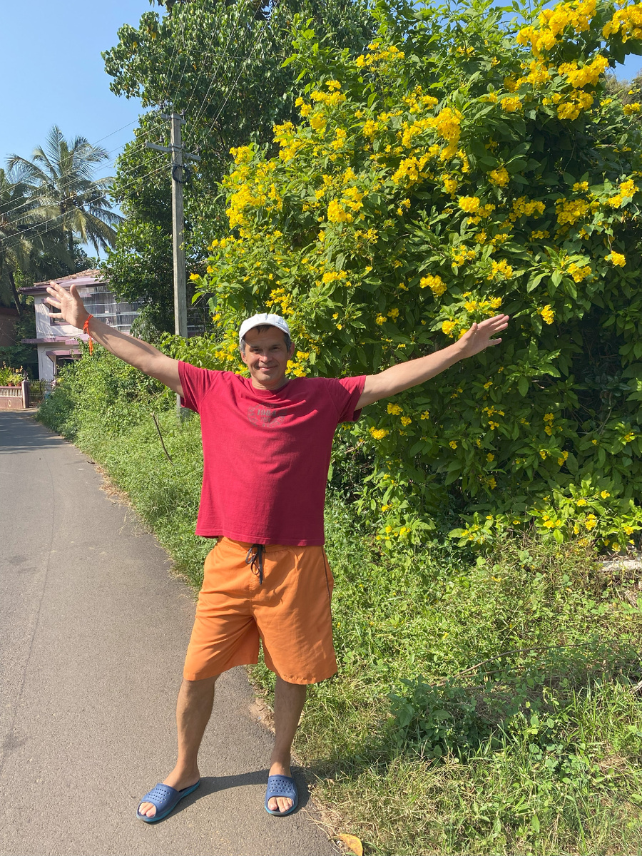 А это ребята рай, еще относительно по дешевой цене. Так как перед новым годом и после цены поползут вверх. Дождей практически не было. Дождей было меньше, чем на Фукуоке, в это же время год назад. Такие огромные листья на деревьях. Большой выбор фруктов, много дешевых кафешек, особенно которые находятся дальше от моря. Сезон только начинается, а цены еще не подняли. В легкую можно торговаться, что мы и делали. Природа как и во всех тропиках райская! Еда супер, мы даже там похудели, много ходили, много плавали, много кушали. Но еда свежая, органическая, морская, выбор большой. В это время года, на болотах тоже цветут цветы, а по ним не спеша прогуливаются павлины, цапли, буйволы. Много разного чая, на выбор на рынке. Уехать из Индии, без чая не дело! Мы заказывали чай у Мусы, у него самый лучший чай. Он торгуется, делает подарки, поэтому его рекомендую. По русски говорит хорошо. А вот и телефон Вы шутите, чтобы Индия не удивила, такого не может быть! Своя индийская кухня, оче