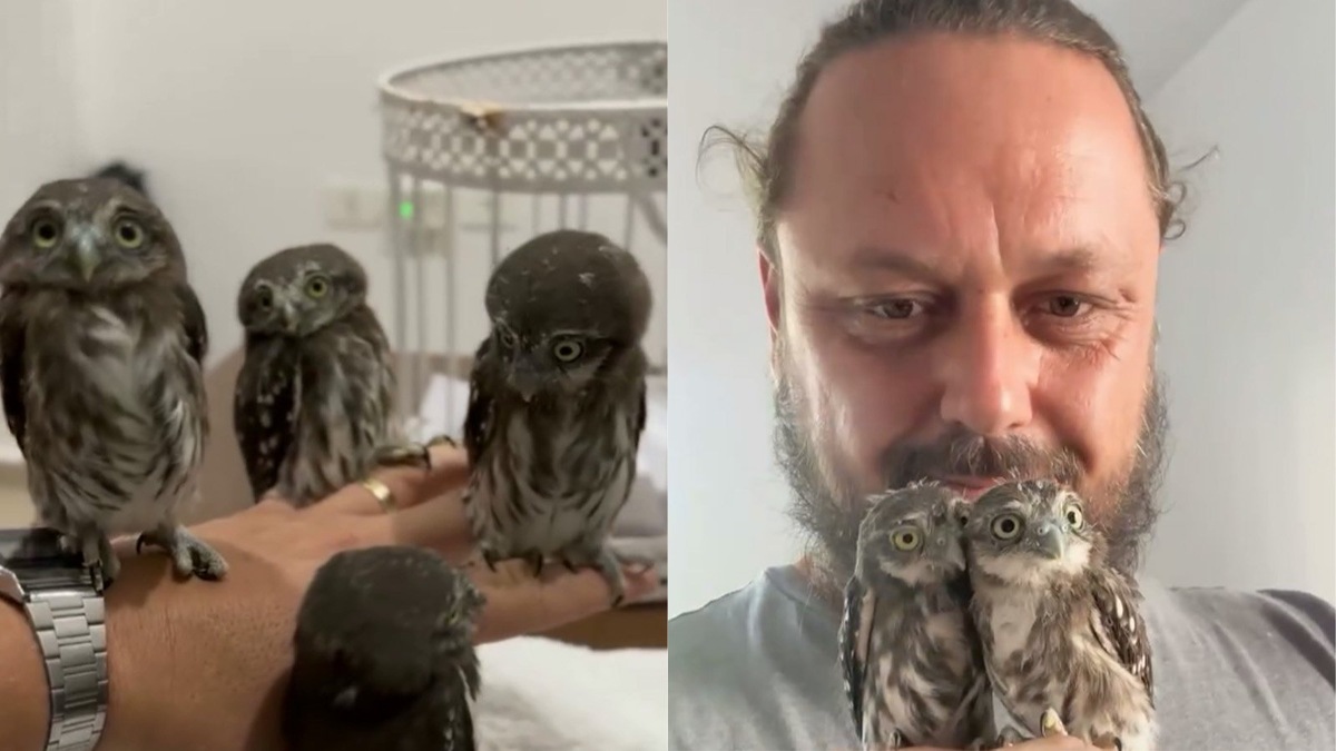 Однажда утром, когда Рохо проснулся и пошел в ванную, он не ожидал, что его повседневная рутина будет нарушена парой блестящих глаз, которые удивленно смотрели на него. Шок удвоился, когда мужчина обнаружил еще троих совят. Вскоре тайна появление птенцов в доме раскрылась: Рохо услышал странный шум из вентиляции. Решив проверить, мужчина снял решетку и обнаружил еще одного совенка, который выглядывал оттуда. Стало ясно, что птицы жили в вентиляционной системе дома и по неизвестным причинам некоторые из них начали покидать гнездо. Он начал искать информацию о том, как правильно кормить птенцов, и оборудовал для них мягкую клетку. Совята быстро привыкли к мужчине: они следовали за ним по пятам, устраивались у него на руках и плечах и даже пытались «помогать» ему работать, садясь на клавиатуру или документы. Птенцы стали частью повседневной жизни Рохо, и мужчина к ним искренне привязался. Однако опекун понимает, что вскоре птенцы должны оказаться в естественной среде обитания.