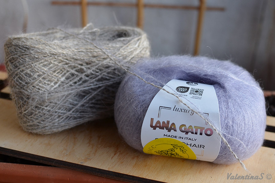 Пух колли вполне дружит с мохером. В свое время я заказывала пряхам пряжу из сученых нитей коллиного пуха и мохеровой пряжи. Вполне практичная и качественная была пряжа. А тут я купила тонкую пряжу мохер на шелке, думала добавить к тонкой пряже из колли и связать палантин. Но когда начала вязать, поняла, что получается более плотно, чем планировалось, а планировалась паутинка. Так что я распустила то, что связала, отмотала мохер и убрала его до лучших времен. И вот время мохера настало. В случившееся свободное время я села вязать варежки и митенки к зимнему сезону. И вспомнила про мохер. И про остатки тонкой пряжи из пуха колли. Осталось несколько моточков разных оттенков от больших проектов. Я как раз думала, куда их можно использовать. Мохер шикарный. Лана Гатто, 75% суперкидмохер, 25% шелк. А цвет! Ммм! Обожаю. Пух мраморной колли, спряденный в тонкую ровную нитку роскошного серебристо-серого цвета. Я связала на пробу из этого тандема варежки и митенки. Такой материал просто таки с
