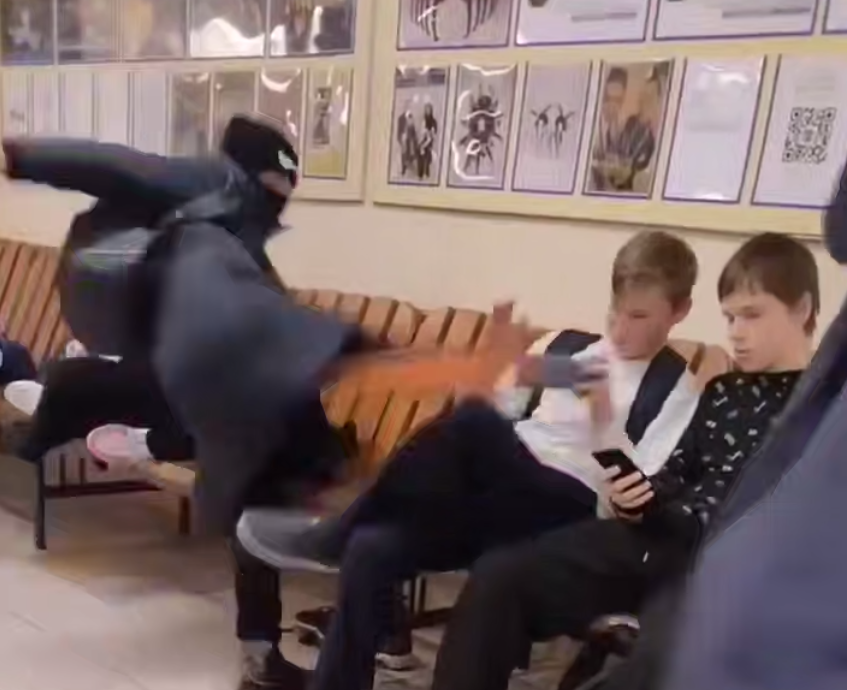 Но судя по ролику, было видно, как один из подростков, крепкий и высокий, словно без какой-либо видимой причины начал докучать своему худощавому однокласснику, застенчиво прячущемуся за стеклами очков. Последний старался не обращать внимания на провокации, что, похоже, только более раздражало его агрессивного противника, в итоге обрушившего на него мощный удар кулаком прямо в голову.