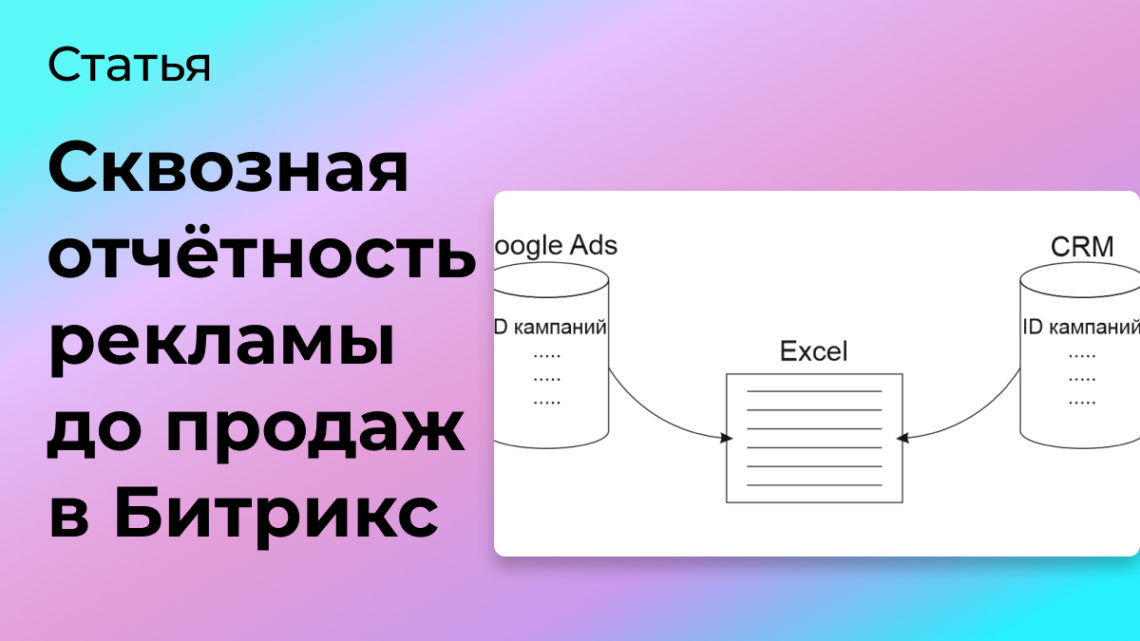 Битрикс предлагает широкие возможности для управления бизнес-процессами, а наличие интегрированной отчётности позволяет объединить данные о рекламных активностях с показателями продаж. В статье покажу, как может быть построена сквозная отчётность рекламы до продаж в Битрикс, а также как связать рекламные кампании с заявками из CRM. Больше полезных материалов можно найти в моём блоге. В нём я регулярно делюсь бесплатными шаблонами и инструкциями, которые существенно облегчают жизнь маркетолога. А ещё больше интересного в моём Телеграм. Подписывайтесь! Запущена контекстная реклама в Гугл Эдс, ведущая на сайт компании. Заявки с форм, почты и телефонные звонки падают в CRM Битрикса с различными статусами. Необходимо оценивать эффективность кампаний до конечных статусов в Битриксе. Чтобы реализовать данный отчёт, будем использовать Excel с надстройкой Power Query и Power Pivot. Итак, у нас имеется: Я специально максимально упростил кол-во источников данных, чтобы вам было более понятно. По-