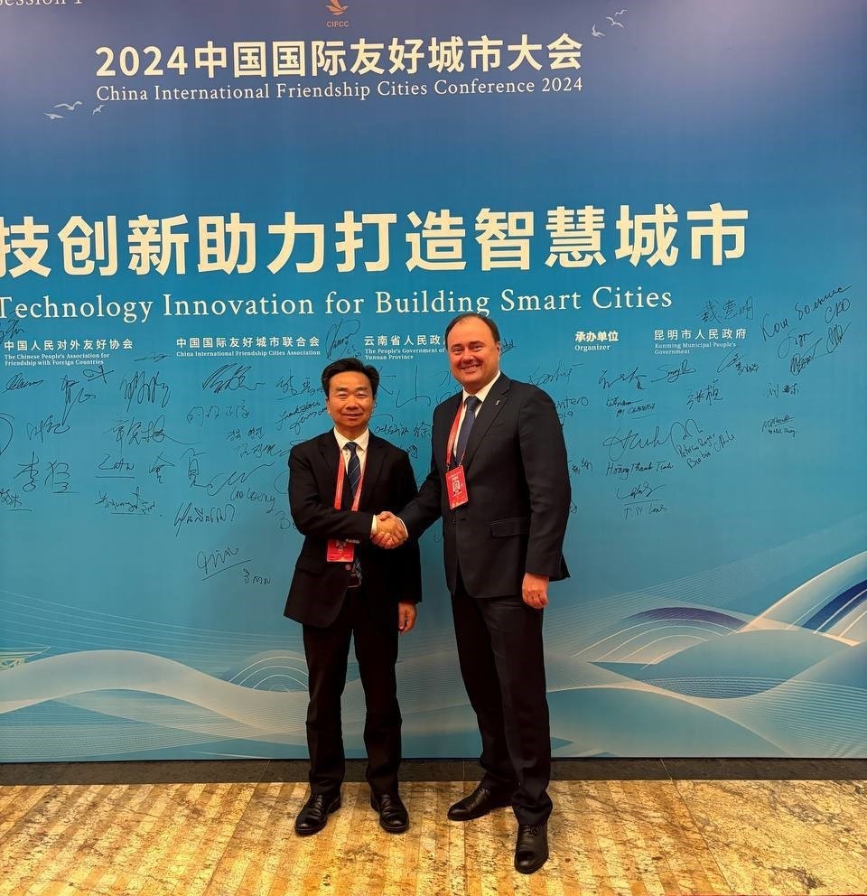 Предыдущая поездка была в октябре 2023 года. Сегодня Артем Молчанов сообщил, что снова находится в Поднебесной. Мэр Ярославля принимает участие в форуме городов-побратимов в китайском Куньмине. У столицы «Золотого кольца» сейчас два города-побратима из КНР — Нанкин и Цзюдзян, с которыми выстраивают экономические связи, а также отношения в области образования и спорта. «В рамках конференции провели деловую встречу с коллегами из Цзюцзяна и обсудили формат дальнейших образовательных обменов между нашими школами, спортивных соревнований, а также бизнес-миссий. Сегодня уже пять школ Ярославле сотрудничают со школами в Китае, интерес к изучению китайского языка и культуры есть у наших школьников, и также есть такой интерес у их китайских ровесников»,— рассказал Артем Молчанов. На самой конференции ярославский мэр также выступил, рассказав ее участникам о проектах «Безопасный город», «Монитор города» и «Строим зеленый каркас города вместе».