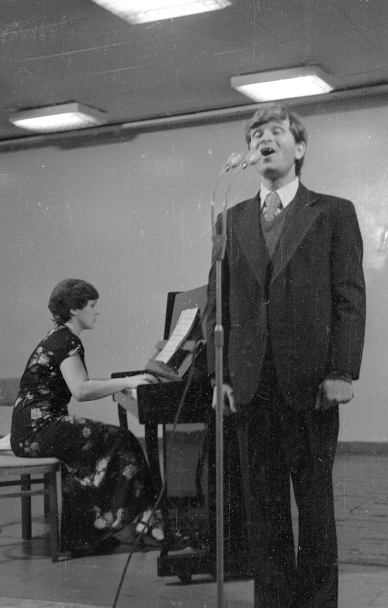 Внизу концерт певца Журавова (?) и его друзей. Актовый зал ремонтно-инструментального завода.