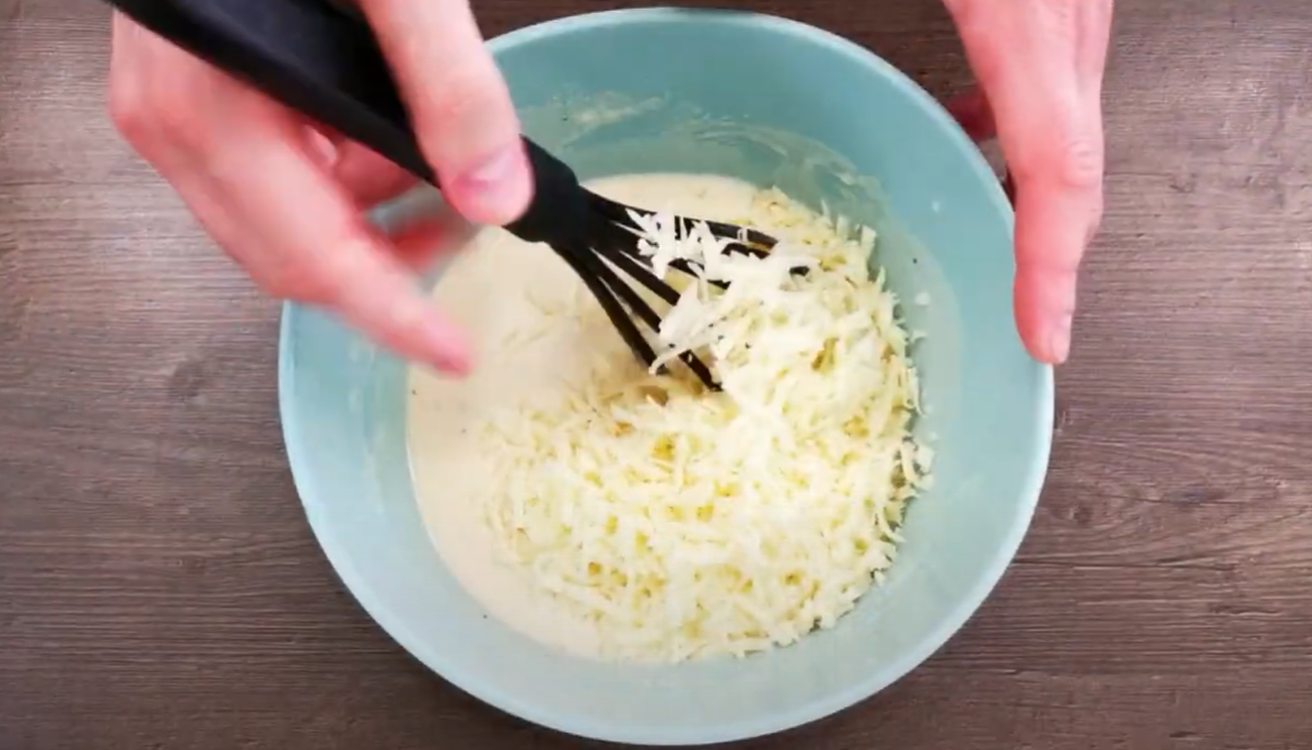 В глубокой миске взбейте два яйца с 300 мл молока. Добавьте по вкусу соль, перец и три столовые ложки растительного масла. Затем постепенно введите 200 г просеянной муки, чтобы получить тесто консистенции густой сметаны. Последний штрих — 100 г натертого сыра, который добавит хачапури фирменный вкус. Шаг 2: Жарка