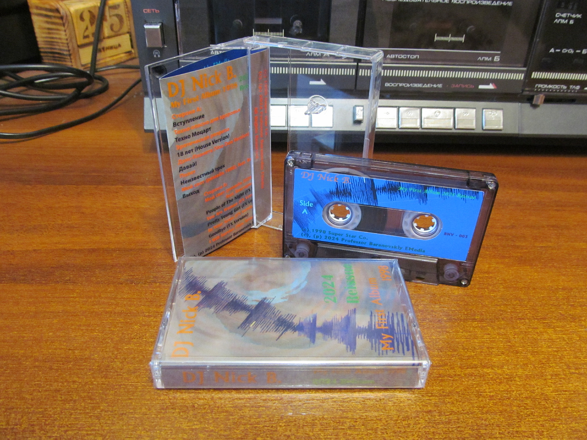 Но вот в 2024 году этот альбом увидал свет на магнитной ленте. Сразу скажу, что он никогда в полном виде не будет выпущен в цифре по ряду причин и на стримингах большинство треков Вы не найдете. Только миниальбом DJ Nick B. My First Album 1998 (2024 Reissue) в составе трех незатейливых треков электронной музыки. Один из треков электронная переработка произведения Моцарта №40.