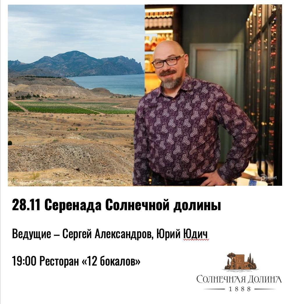 Друзья, чем еще согреться в зябкие вечера наступающей зимы, как не глоточком доброго крымского вина? А еще лучше - легендарного крымского портвейна “Черный Доктор” от “Солнечной Долины”? И сделать это лучше на презентации винодельни, которая состоится в нашем клубе Дегустариум 28 ноября. На винно-музыкальном вечере будут солировать две звезды алкогольного мира - Сергей Александров, бренд-амбассадор “Солнечной Долины”, и Юрий Юдич, основатель винного Клуба Дегустариум. Вам тоже можно будет подпевать песням, которые Сергей обещал исполнить под гитару!🎸🥂 “Солнечная Долина” - историческое российской винное хозяйство, основанное еще в XIX веке князем Горчаковым по инициативе и при непосредственном участии князя Льва Сергеевича Голицына, «Солнечная долина» сегодня переживает вторую молодость и активно развивает новые направления. Общая площадь виноградников «Солнечной Долины» составляет более 400 Га, на которых выращивается более 50 как автохтонных, так и европейских сортов винограда. В