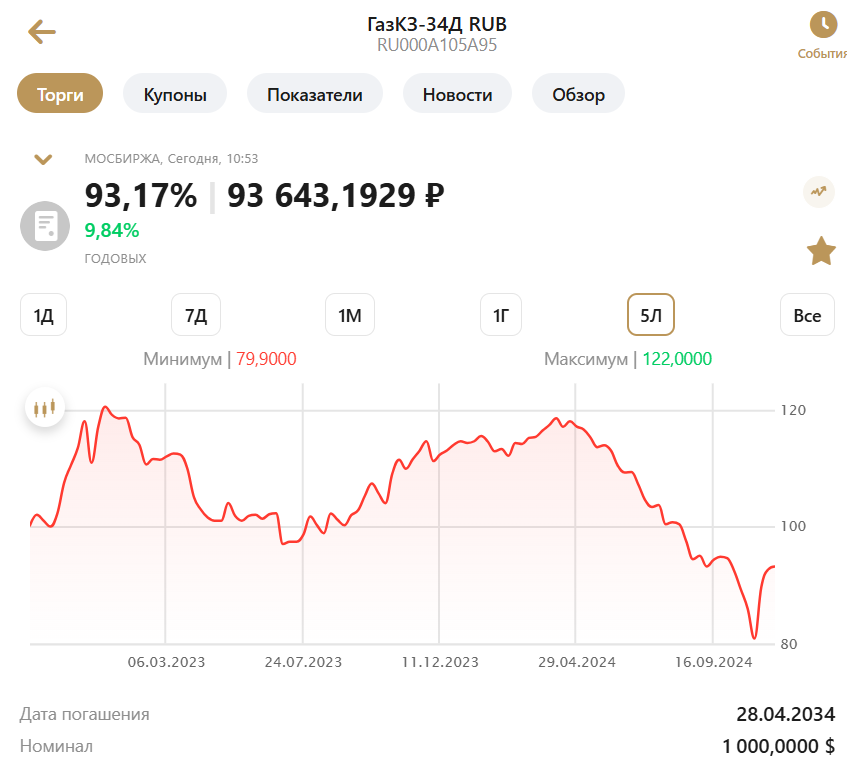 Снижение чистой рублевой цены с пика в 111 775,11 руб 17 апреля 2024) до текущего уровня 92 761,51 (18 ноября 2024) оставило 17%.