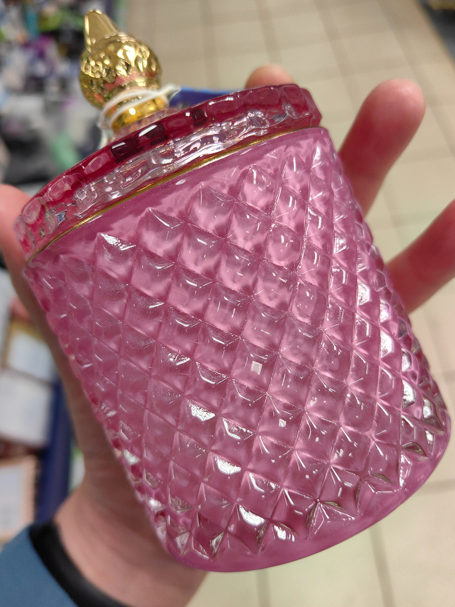 В Фикс Прайс среди товара последнего поступления нашла классные новинки, одну чуть не разбила, спешила поскорее посмотреть. Что привезли? Вот она, новиночка, из стекла, объемный узор ромбиками по стенкам. Стаканчик в руках удержала. А крышку чуть не разбила. Это все потому, что она ничем не закреплена. Честно говоря, я привыкла, что во многих магазинах предметы из керамики и стекла, те, что с крышками, обязательно зафиксированы клейкой ленточкой. И не разобьют, и крышка не затеряется. Кстати, крышка интересная, на ней продолжается узор стаканчика. Ручка золотистая, тоже с рельефом - ромбами. В целом хорошенькая такая новинка, судя по надписи на этикетке, это шкатулка. Хотя, изначально думала, что это свеча в стакане. очень похоже, тем более, через стекло заметно что-то белое внутри. На самом деле внутри ничего нет. Шкатулка "Шахерезада" дополняет коллекцию новинок для интерьера "Электрум". Давно не привозили, выставили светильники с крошечными светодиодами на нитях. Заглянула в к