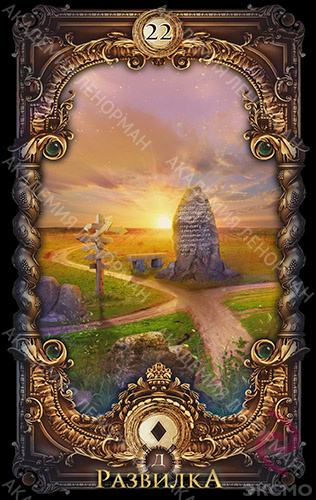 Карта РАЗВИЛКИ может означать конец очередного этапа жизни, преддверие чего-то нового, неизвестного, отсюда - сомнения и печаль.