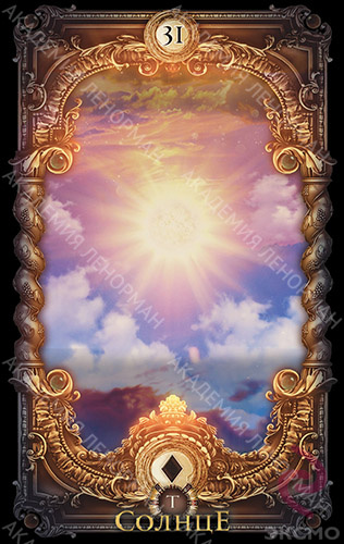 Карта СОЛНЦА символизирует славу, выигрыш, богатство, триумф, радость, искренность, правду, признание, прозрение, восстановление сил.