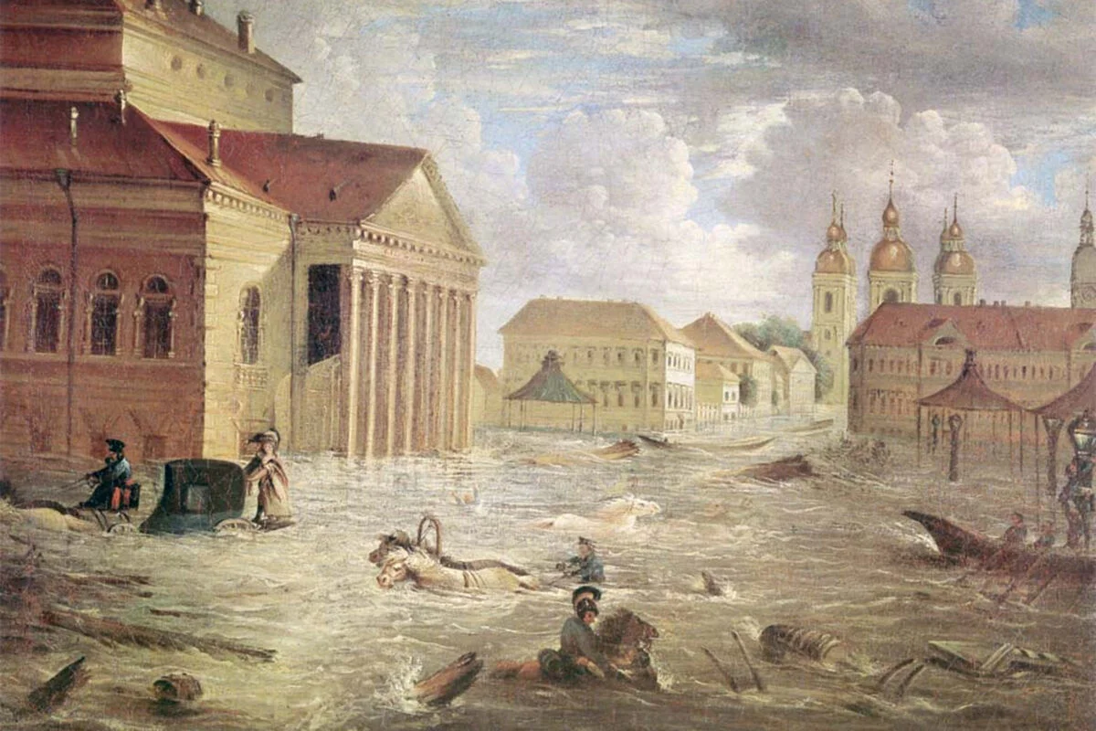 - 200 лет назад произошло самое известное в истории России наводнение — вышедшая из берегов Нева затопила Санкт-Петербург. Жертвами потопа стали сотни человек, тысячи голов скота, ущерб составил до 20 млн рублей. Воспевший бедствие в поэме «Медный всадник» Александр Пушкин поначалу с сарказмом встретил новости о потопе, но потом был поражен масштабами разрушений.