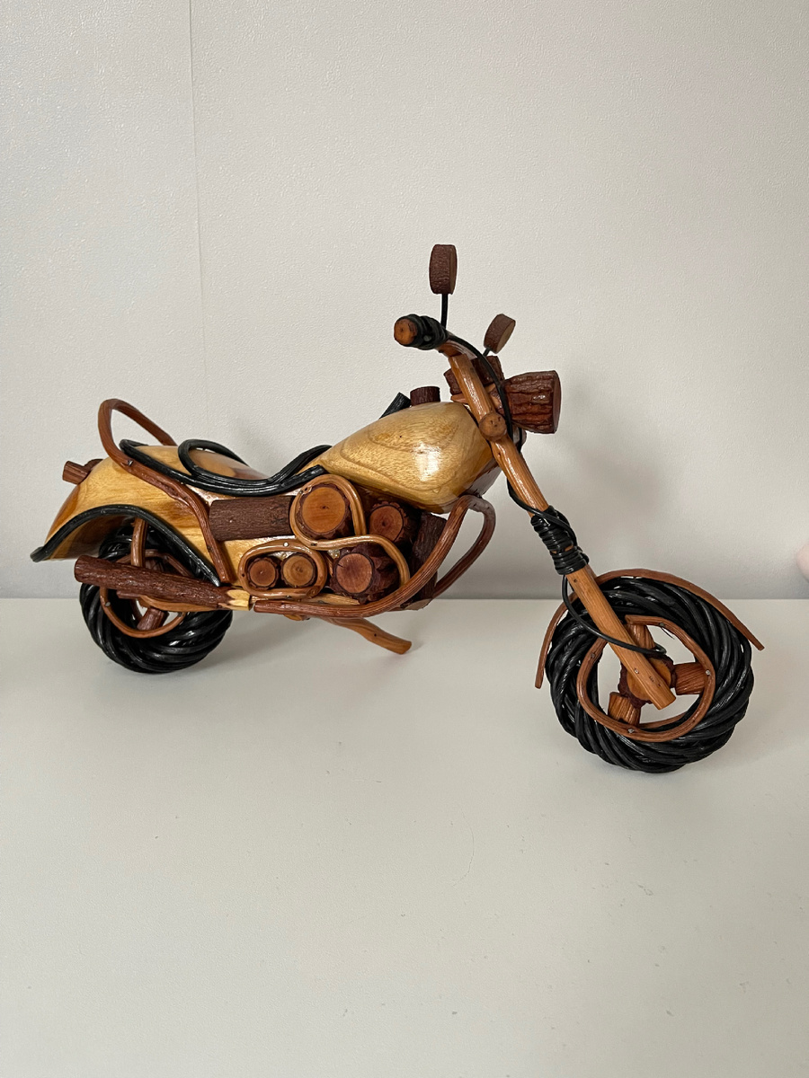 Здравствуйте. Сегодня расскажу о второй продаже на Авито, но на Дзене третья)) Просто она поехала далеко. Итак, это был очень интересный лот - модель мотоцикла из дерева. Привез эту модель мне папа. Про папу ранее тоже упоминала, что он у меня любит собирать всякие интересные вещи, что-то ему отдают, что-то находит. Для таких как он есть название - скопидом. Вроде бы этот мотоцикл он нашел в доме в деревне, который недавно купил. Привез его нам, для внучки. Но его внучке я даже показывать не стала этот мотоцикл - целее будет. Да и она очень тяжело расстается со своими игрушками, потом уже будет не забрать. Положила я этот мотоцикл на полочку сразу же с мыслями продать на Авито. Ну и вот, руки дошли, это был один из первых выложенных мною лотов. Посмотрела аналогичные продавали за 500-1000. Были и дороже, но мне показалась цена в 1000р самая оптимальная. Именно этой модели я не нашла, то есть конкуренции нет. Вроде бы была такая модель, подешевле, но размером поменьше. Эти мотоциклы су