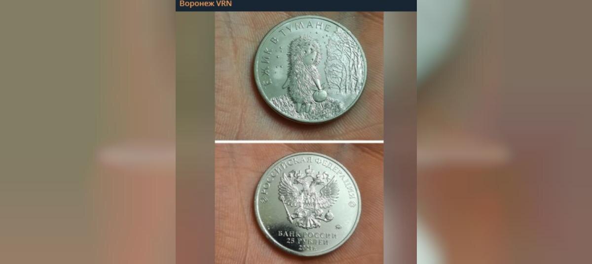 Местному жителю попалась монета номиналом 25 рублей Монету с изображением главного героя советского мультфильма «Ёжик в тумане» (0+) заметили в Воронеже. Кадры появились в социальных сетях. Местному жителю попалась стальная монета с никелевым покрытием. Напомним, таких Банк России «Вот почему я чаще пользуюсь наличными, чем картой. Дали сдачу в магазине такой красотой», — прокомментировал пользователь сети. На маркетплейсах коллекционную монету продают за 150 — 300 рублей. Банк России также выпустил другие вариации монеты: из серебра и из медно-никелевого сплава.