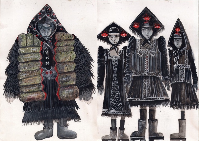 Одноглазка охраняет проходы между мирами, но Хаврошечка с легкостью проходит ее. Двуглазка имеет особую связь с человеческим миром и является стражем для реальности. С Трехглазкой все сложнее. Хаврошечка не видит, как она следит за ней третьим глазом - он, невидимый и сакральный, позволяет заглядывать за пределы нашего мира в другие измерениях.