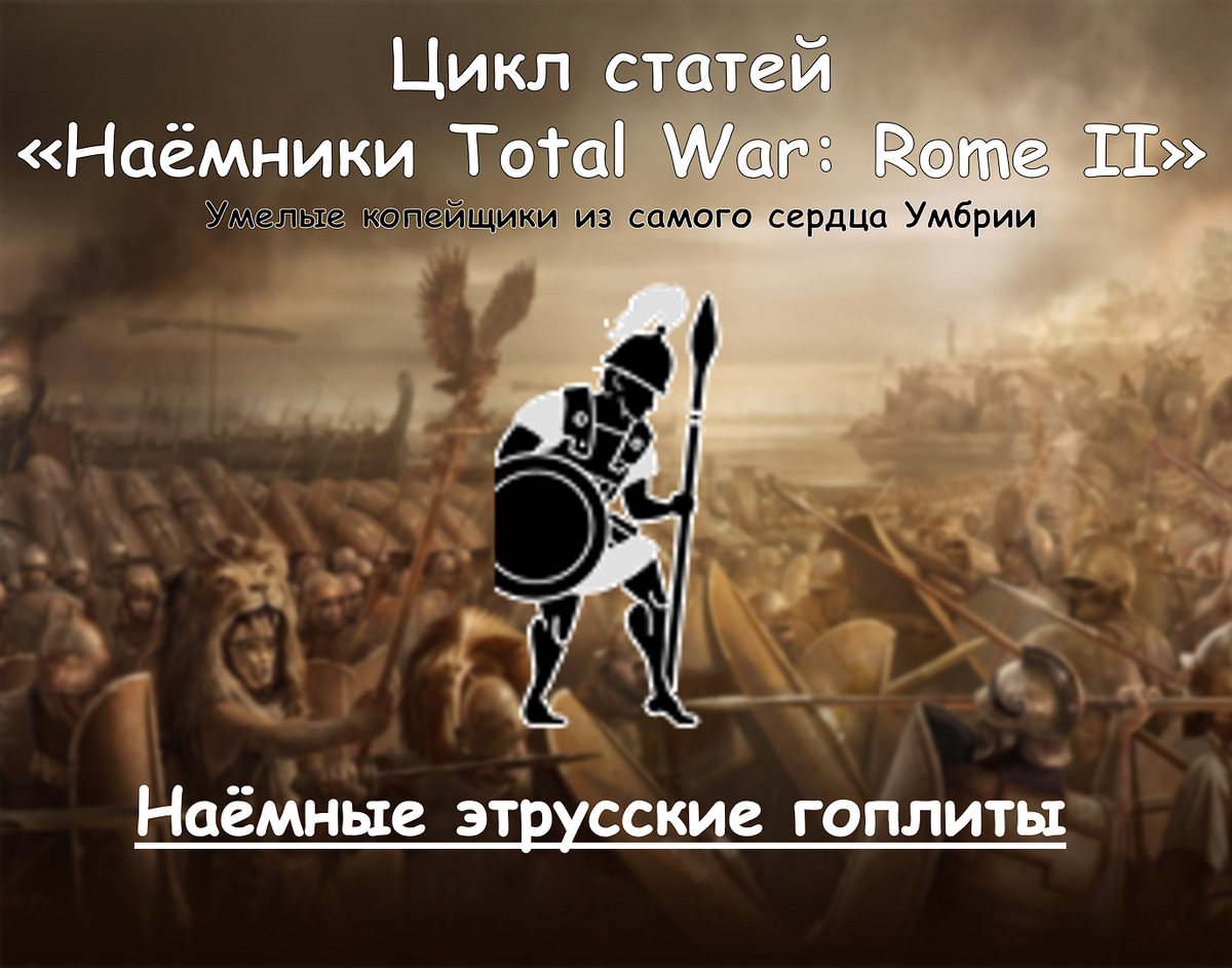 «Наёмные этрусские гоплиты» - очень тяжелая пехота с копьями, нанимаемая в Италии. Максимальное количество «наёмных этрусских гоплитов», доступных для найма в регионе - 3 отряда. Скорость появления юнита составляет 1 отряд - каждые 6 ходов. То есть, если вы наймете их, то через 6 ходов появится еще один отряд. «Наёмные этрусские гоплиты» - уникальный отряд, который не доступен в качестве регулярной единицы ни одной фракции. Гоплиты получили свое имя от гоплона - круглого щита. Этот вид войск появился во время конфликтов между греческими городами-государствами в VIII-VII веках до н. э. К началу Греко-персидских войн гоплиты носили бронзовые шлемы, обычно коринфского типа, и панцири из бронзы или плотной ткани. Они были вооружены копьями с железными наконечниками и бронзовыми противовесами, а также короткими мечами. Гоплон и копье определяли тактику боя: гоплиты сражались в фаланге, состоявшей обычно из восьми рядов. В разомкнутом строю фаланга могла осуществлять маневры и пропускать зас