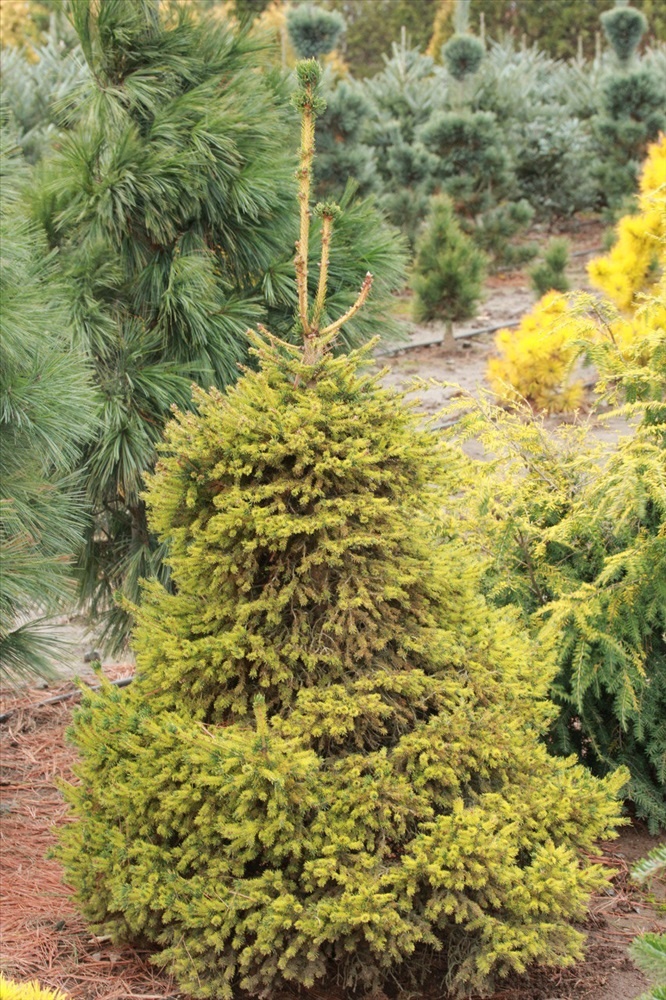 Ель Голд Даст – это уникальный и довольно редкий сорт ели обыкновенной, созданный селекционером Талоном Бухольцем из Соединенных Штатов Америки. Название сорта переводится как «Золотая Пыль», благодаря особому окрасу хвои.