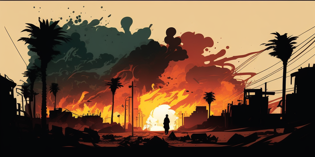 Иван сидит в углу бункера, обхватив колени. На его лице отражается отчаяние и страх. Вокруг него царит хаос: люди кричат, спорят, кто-то плачет. Внезапно, вспышка света ослепляет его, и он слышит громкий взрыв.