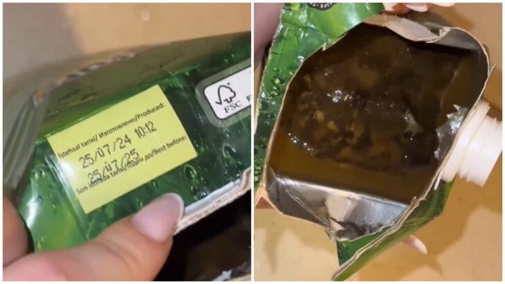 Блогер Афсана Фарадзаде опубликовала в социальной сети видео, в котором рассказала о неприятном сюрпризе, обнаруженном в пакете сока Natura. Девушка решила попробовать популярный напиток, однако при вскрытии упаковки обнаружила там плесень и гниль. «Сколько людей пьют это каждый день? Может кто-нибудь объяснить, что там внутри? Это покупают и дают маленьким детям, продают в школах. Это просто отвратительно», - прокомментировала свою находку Афсана. Блогер отметила, что срок годности продукта еще не истек. Сначала она открыла пакет обычным способом, но заметила, что сок льется медленнее, чем обычно. Когда девушка разрезала упаковку, то была шокирована увиденным внутри. Редакция Qafqazinfo направила запрос в Агентство продовольственной безопасности Азербайджана (АПБА) для прояснения ситуации. В пресс-службе ведомства сообщили, что видео взято на контроль и будет проведено расследование в соответствии с законодательством. О результатах обещали сообщить позже. АПБА призывает потребителей с