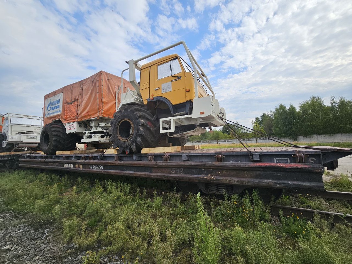Мы успешно перевезли негабаритный груз массой 32 тонны из Московской области в Якутию. Габариты виброисточника (9,9 м в длину, 3,41 м в ширину и 3,7 м в высоту) с общей массой 32 тонны автоматически делают его негабаритным. Такой груз требует тщательной проработки всех этапов: от выбора подходящей платформы до разработки схем крепления, которые выдержат долгий путь через всю страну. Путь длиной в несколько тысяч километров начинается с разработки проекта. Мы подобрали усиленную платформу, согласовали маршрут с учетом габаритных ограничений и обеспечили получение всех необходимых разрешений на транспортировку. Каждый мост, тоннель и станция по пути были тщательно проанализированы на предмет возможности прохождения. На этапе погрузки ключевым фактором стала точность. Мы использовали специальное оборудование для равномерного распределения веса и многоступенчатую систему крепления, которая предотвращает смещение груза даже на сложных участках пути. Якутия знаменита своими суровыми условиям