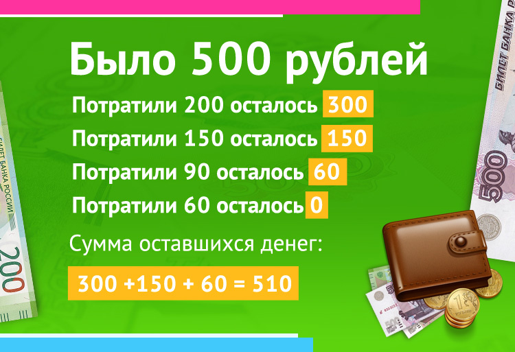 Один завхоз нашёл на складе неучтённые шины и отправил подчинённого Семёна продать 4 колеса за 50 тысяч. Семён нашёл двух покупателей, одному были нужны передние колёса, а другому — задние. Семён имел коммерческую жилку, поэтому продал колёса не за 50, а за 55 тысяч: каждый покупатель заплатил по 27 500 рублей, на 2500 больше, чем нужно. Довольный, он вернулся к завхозу и рассказал об удачной продаже. Но начальник решил проявить принципиальность и отправил Семёна вернуть по 2500 каждому покупателю. А Семён решил схитрить: отдал каждому по тысяче, а три оставил себе. Получается, что каждый покупатель заплатил не 27 500, а 26 500. Идёт Семён и считает в уме: «26 500 + 26 500 = 53 000 — заплатили за колёса, и ещё 3000 у меня осталось. Итого 53 000 + 3 000 = 56 000. А продал я за 55 000. Любопытно». Откуда взялась лишняя тысяча?