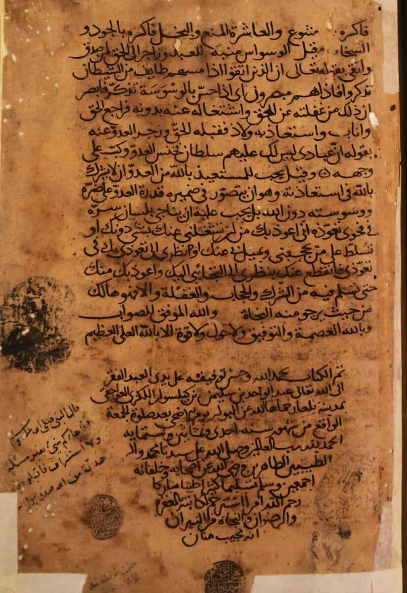 К счастью, рукопись, обнаруженная в Стамбуле, имеет дату. Она датирована 681 г. хиджры, т.е. 1282-83 г., что делает ее древнейшей из сохранившихся и дошедших до нас арабографичных рукописей, переписанных этническим дагестанцем. Дело в том, что почти все выявленные и хранящиеся в Дагестане арабографичные рукописи, созданные до XV в., – недагестанского происхождения. Они в разное время попали в Дагестан, а переписаны были жителями стран Арабского Востока, Ирана, Центральной Азии, Ширвана и других мусульманских регионов. На это указывают и сохранившиеся нисбы переписчиков этих книг. Разумеется, дагестанцы переписывали рукописи и даже были авторами оригинальных сочинений на арабском и персидском языках задолго до XV в., однако эти старые рукописи не сохранились. Например, единственный дошедший до нас рукописный список трактата «Райхан ал-хака’ик ва-бустан ад-дака’ик», завершенного дербентским ученым-богословом и суфием Абу Бакром ад-Дарбанди в начале XII в., датирован 743 / 1342-43 г. Поэтому так ценна находка надежно датированной рукописи 1282-83 г., которую переписал уроженец лезгинского селения Аваджук.
