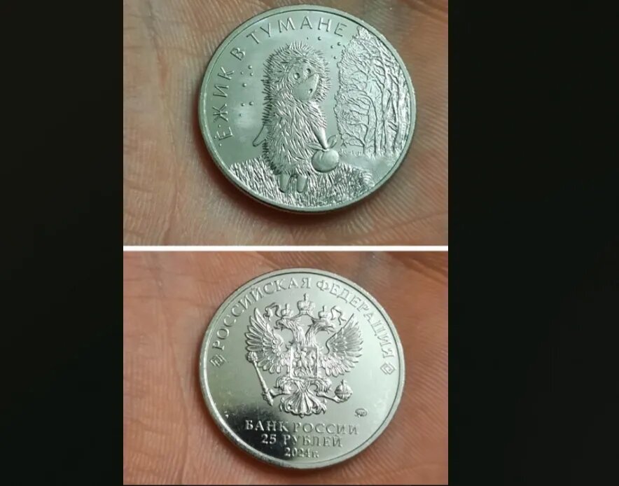 Житель областного центра расплатился в магазине наличными, получив в сдаче 25-рублевую монету с изображением главного героя мультфильма «Ежик в тумане». О необычной находке горожанин рассказал сегодня, 19 ноября, в социальных сетях. Памятные монеты Банк России выпустил этой осенью, к 50-летию легендарного мультфильма. В обороте оказались три вида монет: одна номиналом в три рубля и две – номиналом в 25 рублей. Тираж первой составляет 7 тысяч экземпляров, второй – 850 тысяч, третьей –150 тысяч . Кстати, выпуск монет обернулся скандалом. По словам режиссера Юрия Норштейна, у него никто не спрашивал разрешения на подобное использование героев его работы. Однако в Банке России заявили, что договор был заключен с правообладателем, которым является «Союзмультфильм». Фото – «Воронеж VRN».
