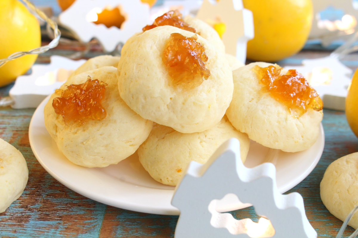 Этот вариант выпечки я тоже считаю зимней, предновогодней или просто подходящей для всех зимних праздников. Тут цитрусовый аромат навевает чудесное новогоднее настроение. Мне рецепт этого печенья встретился в постном варианте, тесто на воде и растительном масле, печенье без джема. Я немного доработала рецепт, чтобы печенье можно было готовить и в праздничные дни, чтобы оно было насыщеннее, ярче и вкуснее. Постный вариант тоже хорош, пробуйте приготовить оба. Печенье получается невероятно душистое, мягкое и красивое. Выпечка будет готова за полчаса. Масло сливочное или растительное - 100 г. Сахарная пудра или сахар - 1 стакан Разрыхлитель - 1 ч.л. Соль - 1 щепотка Лимон - 1-2 шт. Молоко или вода - 100 мл. Мука - 2- 2.5 стакана Джем апельсиновый - 3-4 ч.л. В чашку выложим соль, разрыхлитель и сахарную пудру. Если вы любите в меру сладкую выпечку, то хватает полстакана сахарной пудры. С лимона снимем цедру и добавим в чашку. Я снимаю цедру при помощи колючей стороны терки. Можно использов