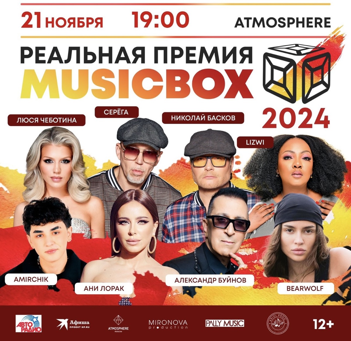 MUSICBOX отмечает своё 20-летие грандиозным событием — возрождением знаменитой РЕАЛЬНОЙ ПРЕМИИ MUSICBOX! 21 ноября в московском концертном зале ATMOSPHERE пройдёт фееричный музыкальный праздник, на котором соберутся самые яркие звёзды российской шоу-бизнеса. РЕАЛЬНАЯ ПРЕМИЯ MUSICBOX 2024 подчеркнёт значимость и вклад настоящих профессионалов музыкальной индустрии страны, особо отметив тех, кто активно участвует в развитии этой сферы. 20 лет в ритме хитов MUSICBOX поддерживает яркие дебюты и золотые имена музыкальной индустрии страны. 20 лет MUSICBOX показывает музыку всех жанров и направлений. 20 лет независимый MUSICBOX остается открытым к любым музыкальным экспериментам, оберегая уважение к заслугам и достижениям широкой музыкальной культуры страны. Палинова Наталья Владимировна, генеральный директор телеканала RUSSIAN MUSICBOX: «Мы провели анализ отечественной музыкальной индустрии за последние годы, оценили её актуальное состояние на 2024 год и определили 20 реальных номинаций и но