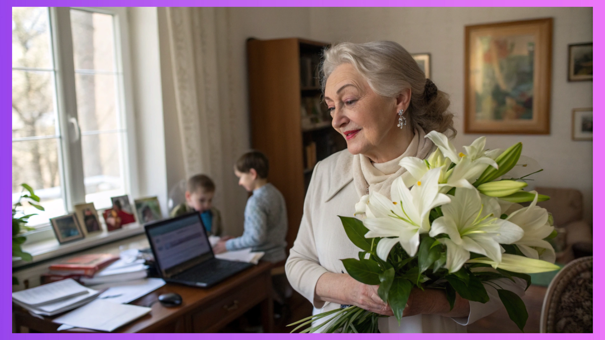 Но дочь уже набирала номер цветочного магазина. Я смотрела на букет и вспоминала, как Серёжа, мой муж, каждую неделю приносил мне лилии. "Они такие же чистые и светлые, как ты," — говорил он. До самого последнего дня, почти год назад...