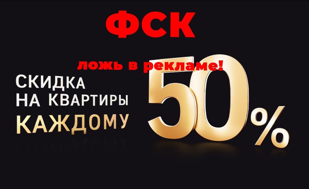 Всегда раздражала недобросовестная реклама. Когда солидная компания размещает рекламу, которая заведомо предполагает кликбейтные заголовки - это утрачивает доверие к компании. Наткнулся на рекламу в ФСК - "Скидки на квартиры каждому 50%" . Естественно, это привлекло внимание. Переходим на сайт ФСК. Нет никаких скидок 50% на квартиры. Это оказывается дополнительная скидка 50% к текущей скидки на квартиру. Причем нет никаких "звездочек", что это что-то иное. Это просто обман. Как это я понимаю, Группа компаний ФСК сделала на ВСЕ свои квартиры скидку и теперь предлагает дополнительно еще 50% скидку от скидки. Бред! А в итоге квартиры как стоили, так и стоят тех же денег. Только громкие заголовки в рекламной кампании. Т.е схема такая - поднимаем стоимость всех квартир на 500 руб. Делаем скидку 200 руб. Потом даем еще скидку 50% от 200 руб. (это 100 руб.). В итоге, получаем, что квартира подорожала на 200 руб., а клиенту сказали, что у него скидка + скидка :) Возможно, что в ФСК считаю