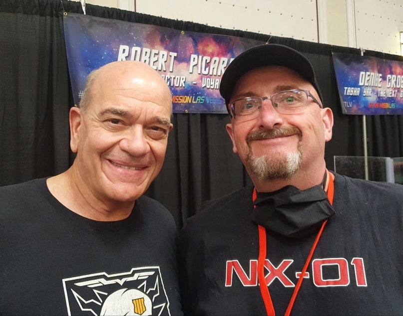 Торговая зона находилась рядом с главным театром, и, как я уже сказал, там можно было встретить большинство приглашенных звёзд и продавцов сувениров, и можно было купить униформу, аналогичную той, которую вы могли видеть в сериалах и фильмах, модели оружия, фигурки, игры, всё, что душа пожелает: от клингонского кровавого вина до ромуланского эля. С утра четверга в здании отеля было полным полно посетителей, и мне сказали, что на съезде в этом году, вероятно, побывало около 7 000 гостей, а в главном театре в течение всего уик-энда прошла серия встреч с участием отдельных звёзд, таких как Билл Шатнер, Кейт Малгрю, Уолтер Кёнинг, группы гостей из других фантастических сериалов и фильмов, плюс несколько приглашенных звёзд, а также режиссёров и сценаристов, и все участники активно общались на каждом мероприятии. Также нашлось место и дискуссиям, которые были интересны узкому кругу посетителей, такие как «Общество Марса» и «Конкурс косплея», а эксперты по спецэффектам собрались в «Театре Родденберри» наверху. О, я, кажется, упомянул «косплей», я бы сказал, что треть посетителей были в костюмах любимых героев, у некоторых были разные костюмы на каждый день и вечер, и все любители эффектных нарядов оказались очень дружелюбными людьми. В любом случае, вы не могли побывать везде и сделать всё сразу, поэтому вам бы пришлось следить за временем, чтобы попасть на нужные встречи, и постоянно сверятся с часами. В пятницу в «Театре Родденберри» на верхнем этаже состоялся еще один вечер караоке, на этот раз ведущим был Энтони Монтгомери из «Энтерпрайза». Всем было очень весело, и я так сильно смеялся, что даже на глазах выступили слёзы. Финал шоу был душевным, поскольку все собравшиеся, возможно, 600 человек, исполнили вместе песню из заглавных титров «Энтерпрайза», а Энтони был чрезвычайно мил весь вечер. В субботу я выступил в качестве приглашенного гостя на мероприятии, собравшим вместе съемочные группы «Глубокого космоса 9», «Вояджера», «Пикара» и «Энтерпрайза», а также специальную группу приглашенных звезд и дублеров-каскадеров, и все они были очень весёлыми ребятами. Собравшиеся были рады поделиться своими забавными историями со всем миром. Субботним вечером Роберт Пикардо, наш дружелюбный ЭМГ, устроил шоу вместе со своим другом Джорданом Беннеттом. Это был микс шуток, пародий и песен. Если вы помните сериал «Вояджер», Доктор любил оперу и пел в нескольких эпизодах сериала, Роберт Пикардо действительно пел в этот субботний вечер, и у него неплохо получалось, и, здесь в Вегасе, он исполнил несколько песен к искренней радости собравшихся.