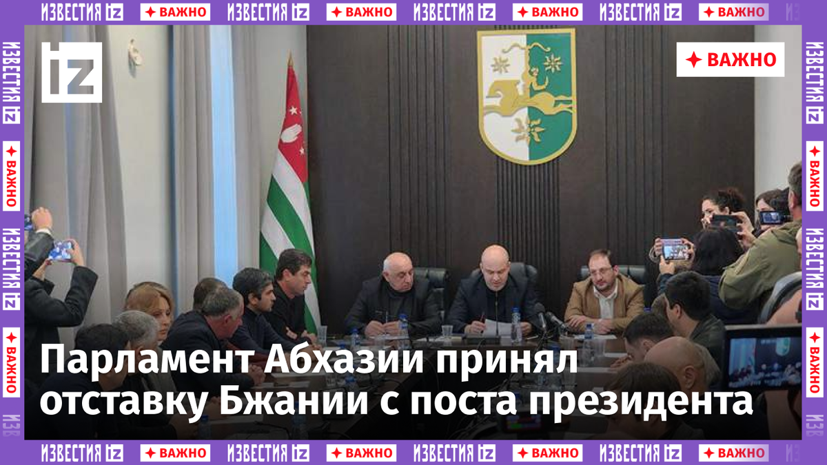 Парламент Абхазии принял отставку Аслана Бжании с поста президента страны. Об этом сообщил корреспондент «Известий». Решение поддержали 28 депутатов в ходе тайного голосования. Еще один выступил против, а два бюллетеня признали недействительными. Обязанности главы государства до проведения досрочных выборов будет исполнять вице-президент Бадра Гунба. Заявление об отставке Бжания подал ранее в этот день в рамках соглашения с оппозицией на фоне протестов. Также в отставку должен уйти премьер-министр Александр Анкваб, остальные члены кабмина продолжат исполнять свои обязанности. В ответ участники демонстраций должны покинуть территорию комплекса правительственных зданий. Ранее, 11 ноября, сообщалось о стычках возле здания Службы госбезопасности Абхазии. Позднее генпрокурор страны Адгур Агрба сообщил, что оперативники задержали несколько человек, которые позднее были освобождены. 15 ноября грузовик протестующих выломал ворота забора парламента и часть митингующих оказалась на внутренней те