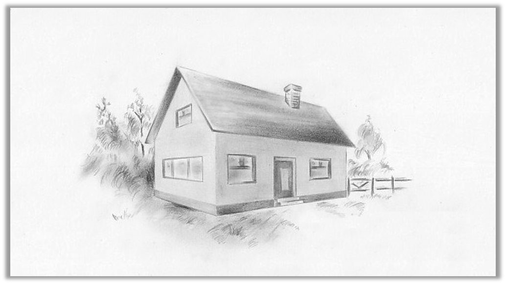 Как нарисовать дом поэтапно карандашом при помощи перспективы. Вы наверняка слышали слово – перспектива. Не стоит бояться этого слова, ведь именно перспектива всегда поможет вам рисовать ровные здания. В этом уроке показываем, как нарисовать дом. Попробую рассказать, как нарисовать дом поэтапно, на максимально простом и понятном языке. Именно поэтому не буду утомлять вас множеством линий. Практика и только практика поможет вам узнать, что такое перспектива и как нарисовать дом при ее помощи. Для рисования вам понадобиться линейка и мягкий карандаш. Начнем с того, что начертим линию горизонта, примерно посередине листа. Отметим на линии горизонта две точки – «А» и «В». Из каждой точки проведем линии, пересекающиеся между собой. Из точки пересечения, проведем вверх одну вертикальную линию. Затем справа и слева тоже проведем по одной вертикальной линии. Смотрите рисунок ниже. Далее уже над линией горизонта, проведем две горизонтальные линии. Стены дома у нас готовы! Вытираем ластиком