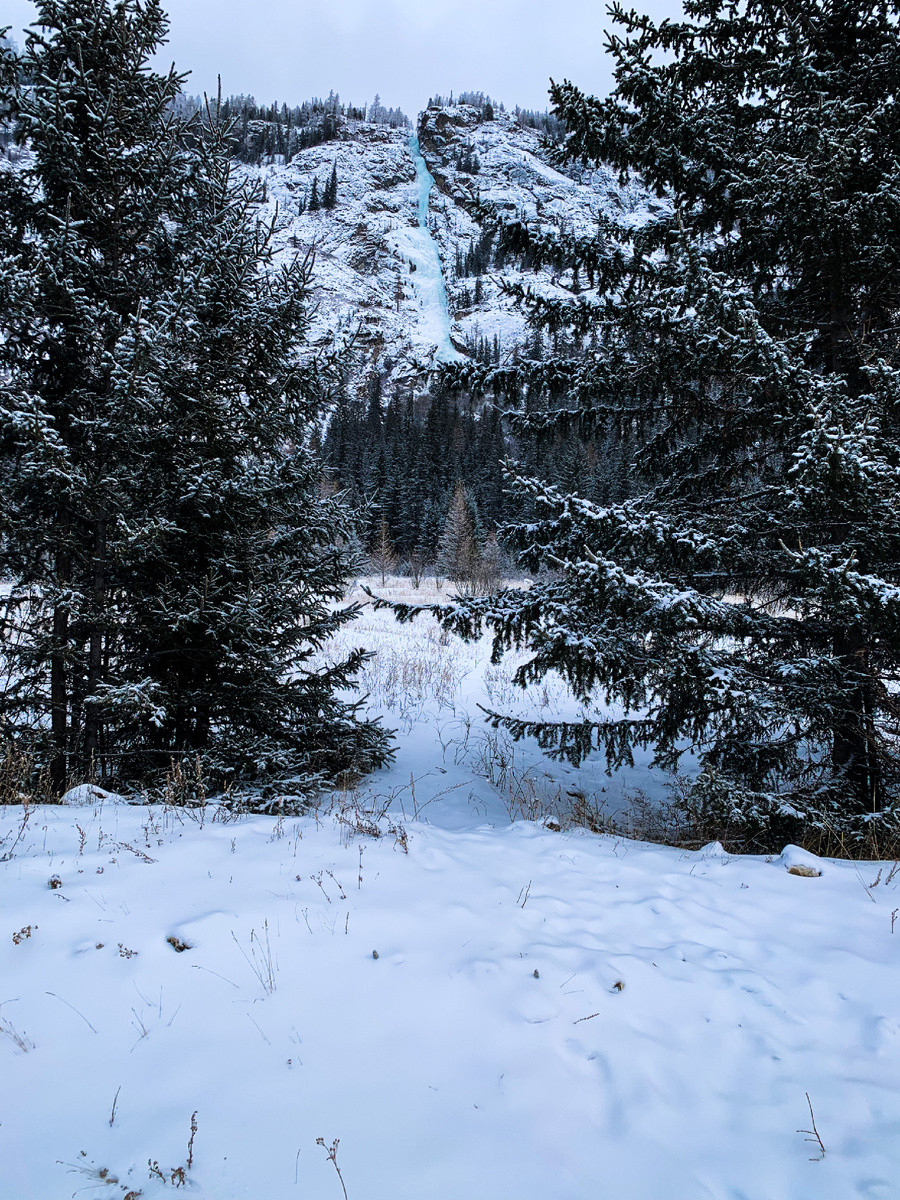 Водопад Храпова, также известный как Кургак Суу, зимой хорошо виден с Чуйского тракта, если ехать от села Акташ в сторону Монголии. Расположен он не доезжая до базы «Маленький рай». 📍место на карте (водопад) 📍Республика Алтай, Улаганский район, с. Акташ Расстояния и время в пути: от Горно-Алтайска - 360 км; 5-6,5 ч; от Акташа - 6 км; 8 мин. Водопад образуется талой водой от ледников гор Тонгулакского хребта. Высота водопада составляет около 180 метров. Водопад особенно впечатляет зимой, когда он замерзает и становится доступным для восхождения. По информации из разных источников, этот водопад пользуется популярностью у альпинистов, но когда мы там были не увидели никого. Летом воды становится меньше, и водопад стекает под скалу. Слева от дороги, перед забором начинается тропа, ориентировочно её длина 800 м. 📍место на карте (начало тропы) Вначале тропа простая через лес, но дальше начинается крутой подъём наверх. По свежему снегу нам было трудно подниматься и в какой-то момент троп
