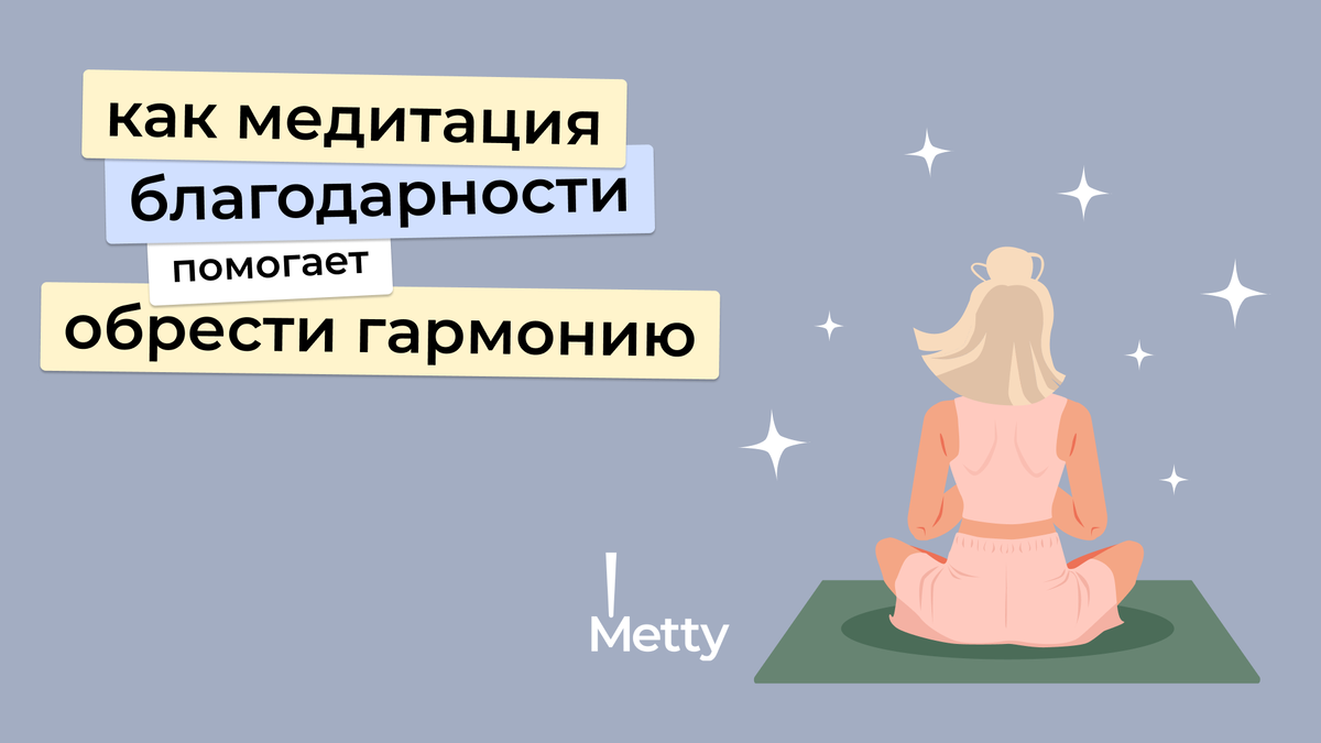 Практика благодарности включает многие традиционные медитативные техники: сканирование тела, фокус на дыхании и не только. Зачастую до начала таких медитаций советуют проводить медитации на очищение от обид, прощение, примирение. Это позволяет избавиться от серьезного тяжелого груза, выступающего моральным блоком для осознания и принятия благодарности. Современное приложение для духовного развития Metty покажет какие лучше медитации выбрать, чтобы оптимально настроить работу благодарности и получить максимум положительной энергии от нее.